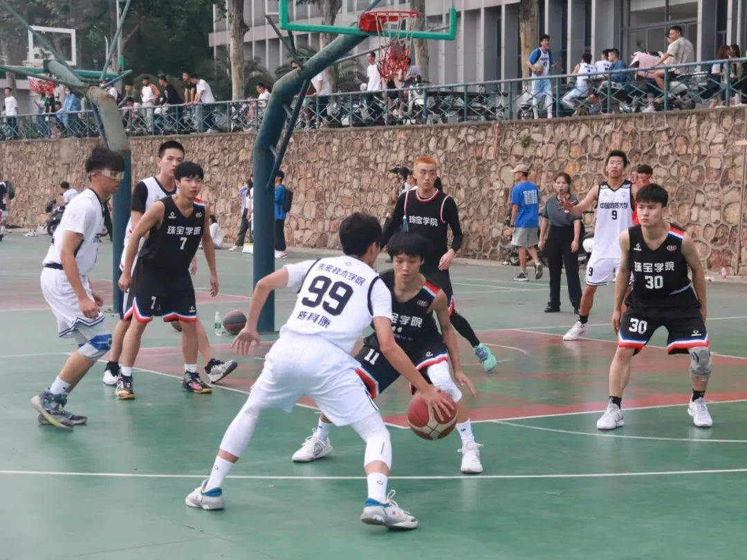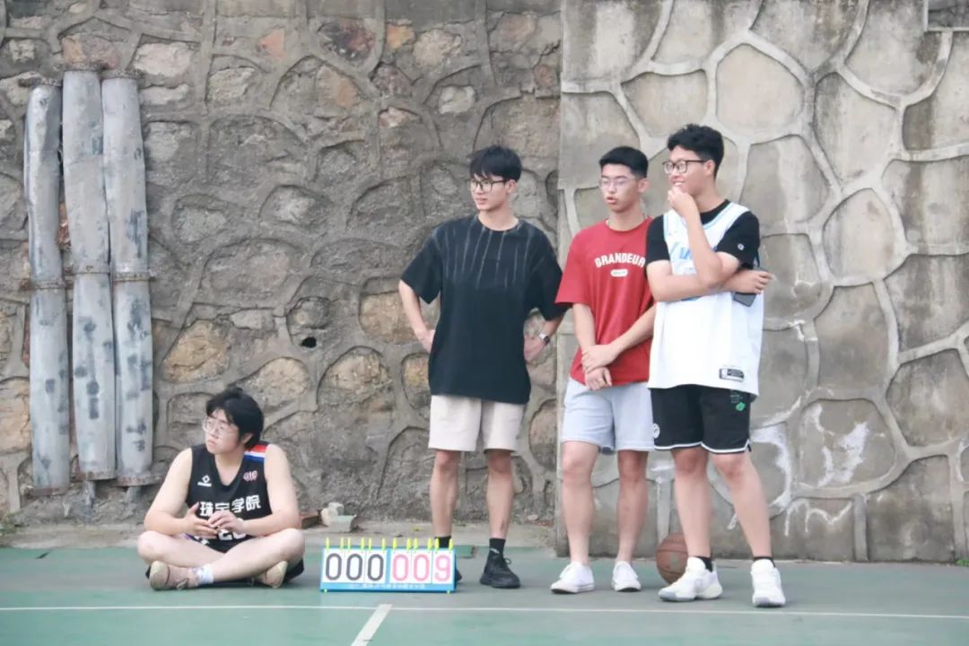 队员们最难忘的,是5月21日对阵珠宝学院的比赛。各队员积极准备,提前到达西区C5球场热身。比赛开始,42号谢正扬手感火热,连续命中三分,率先建立起领先优势。其他队员也在攻防两端积极转换,为球队稳定领先的局势,院队一波9:0的开局引爆了现场气氛。随后对面球队也开始发力,多次攻击篮筐得分,不断迫近比分。半场结束,我院以2分的微弱优势结束上半场的比赛。来到下半场,我院因为体能的下降,面对高年级队员得分愈发困难,但我院全体队员不惧强敌,沉着应战,完整诠释了什么是拼搏精神,最终以27:30的微小差距憾负珠宝学院。