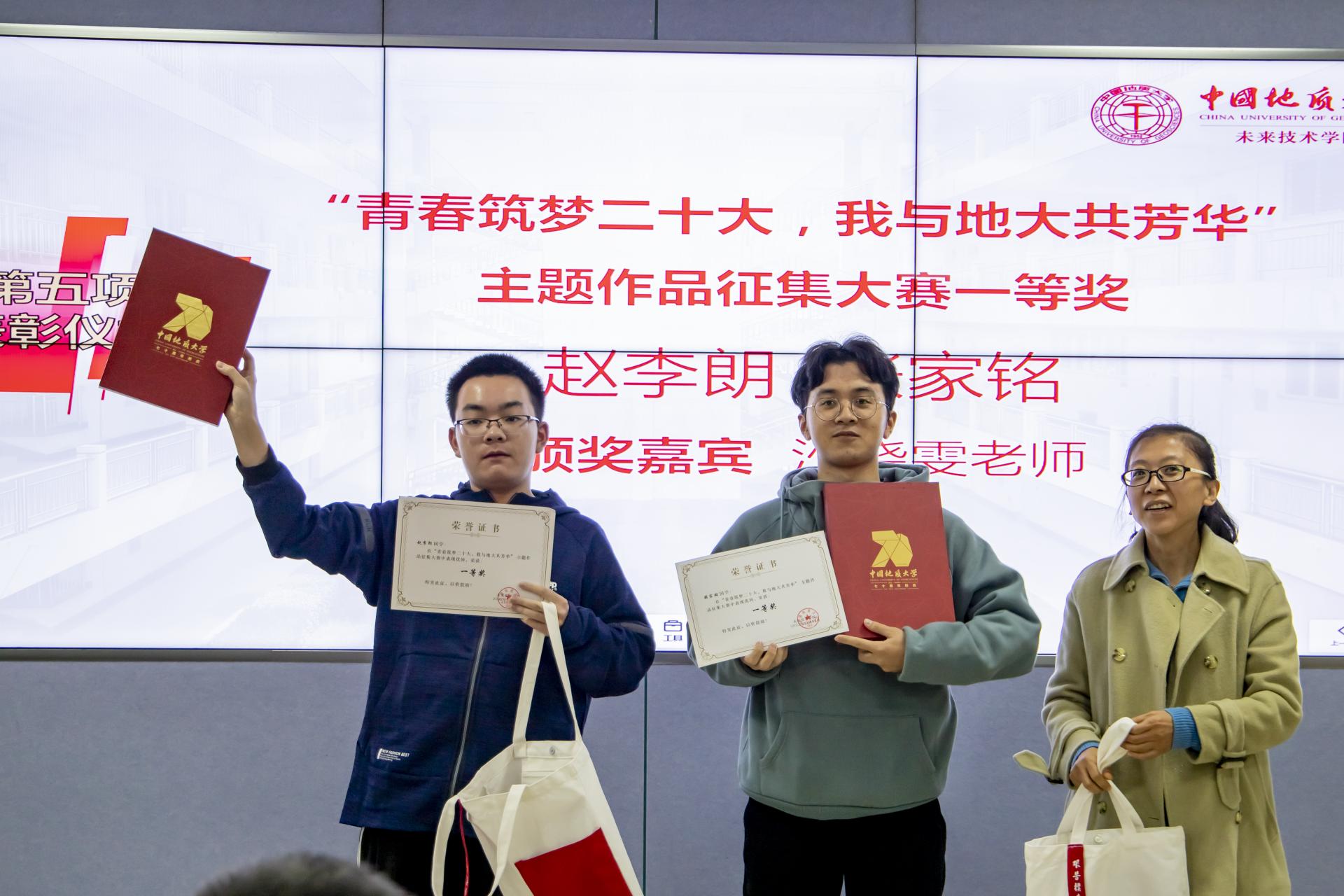(沙晓雯老师为“青春筑梦二十大,我与地大共芳华”主题作品征集大赛获奖学生颁奖)