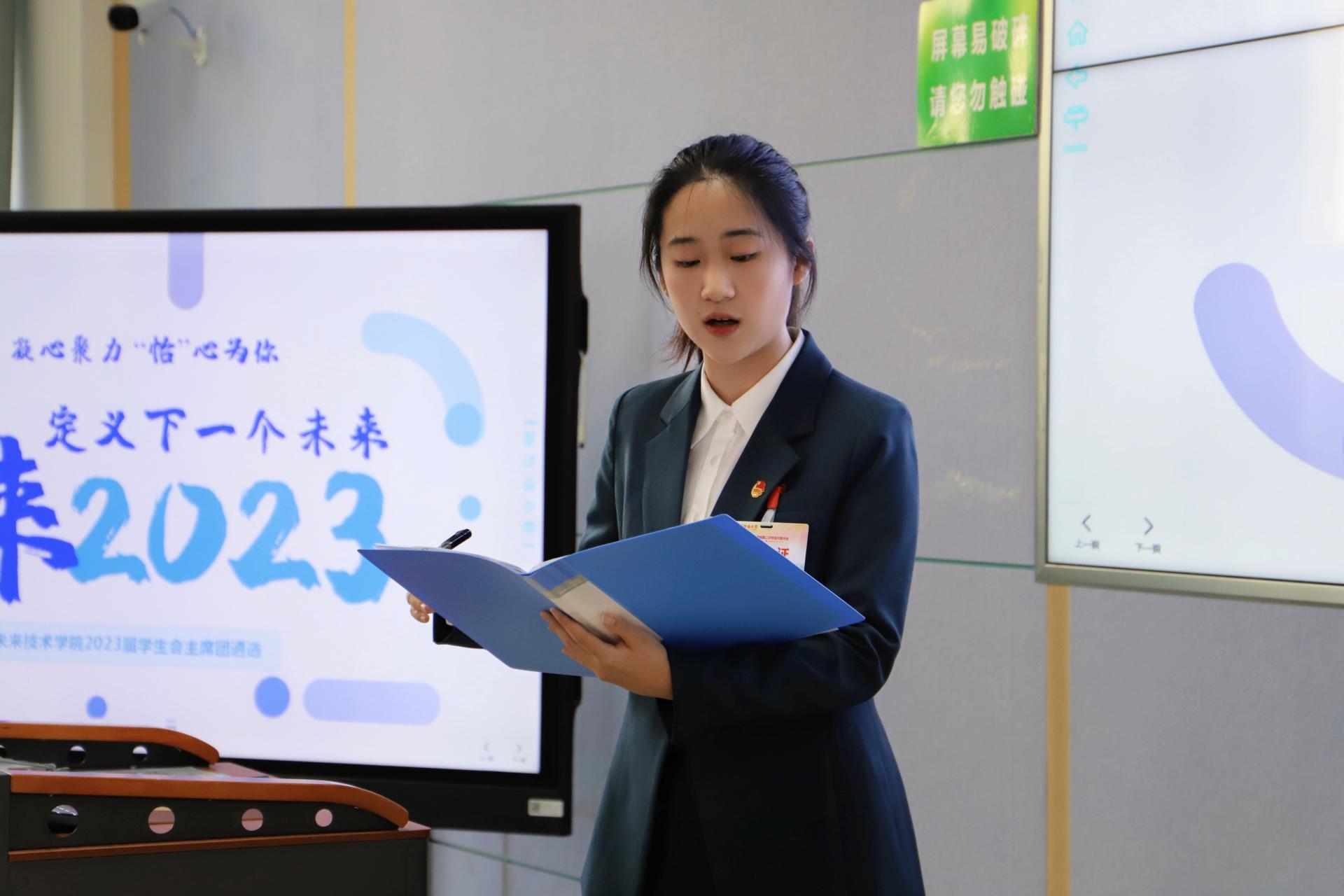 经全体代表不记名投票,会议选举产生了未来技术学院学生会2023届主席团以及第二届学代会常任代表会议常任代表,提名并通过学生会秘书长人选。
