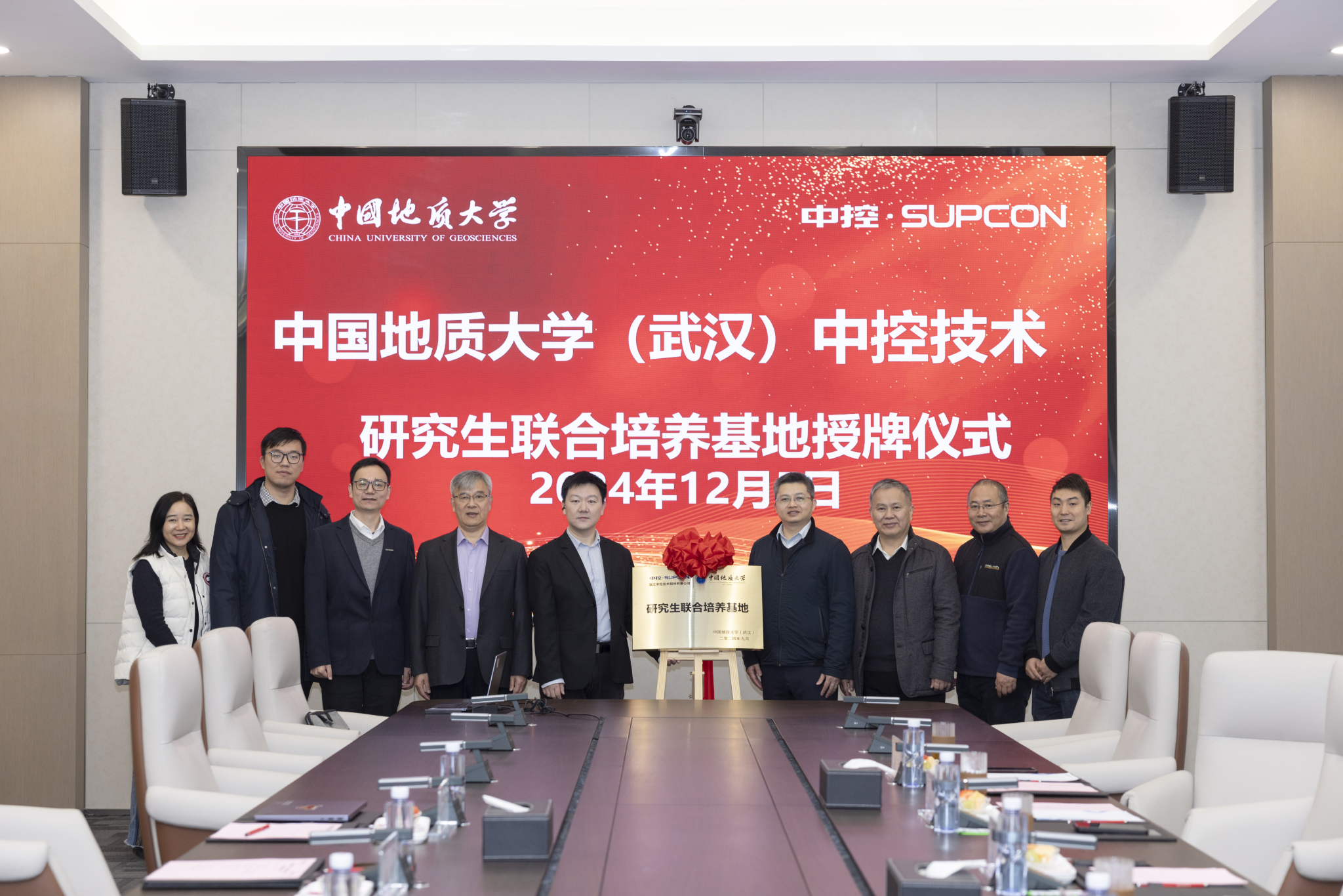 随后,双方举行了中国地质大学(武汉)、中控技术研究生联合培养基地授牌仪式。经双方协商,中控技术研究生联合培养基地既是我校专业学位硕士研究生见习实习、教学实践的重要基地,也是实施“双导师型”联合培养模式实践教学的重要平台。双方将依托研究生联合培养基地的运行,使学校研究生的理论培育与中控技术的实践锤炼紧密结合,在推动人才培养和校企融合中实现合作共进、携手共赢。