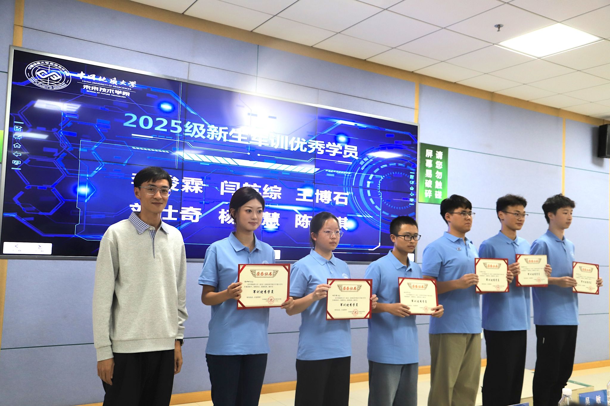 在刚结束的为期半个月的军事训练中,一批同学表现突出,他们不畏艰苦、严于律己,以实际行动践行“请党放心,强国有我”的青春誓言,展现出新时代青年的昂扬风貌。学院党委副书记杜育为2025级军训优秀学员颁发荣誉证书,勉励大家继续保持优良作风。