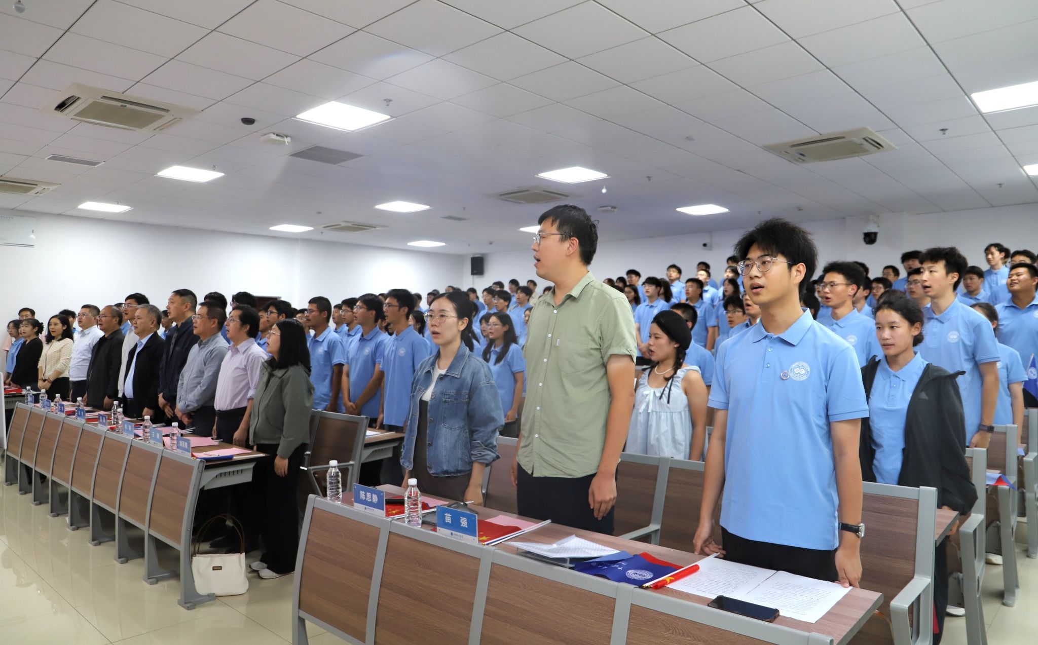 院徽是学院精神与文化的重要象征,凝聚着“艰苦朴素、求真务实”的校训精神,也承载着探索未知、勇于创新的使命担当。在庄重的仪式中,院长吴敏教授为2025级新生代表佩戴未来技术学院院徽,标志着新生正式成为未来技术学院大家庭的一员。