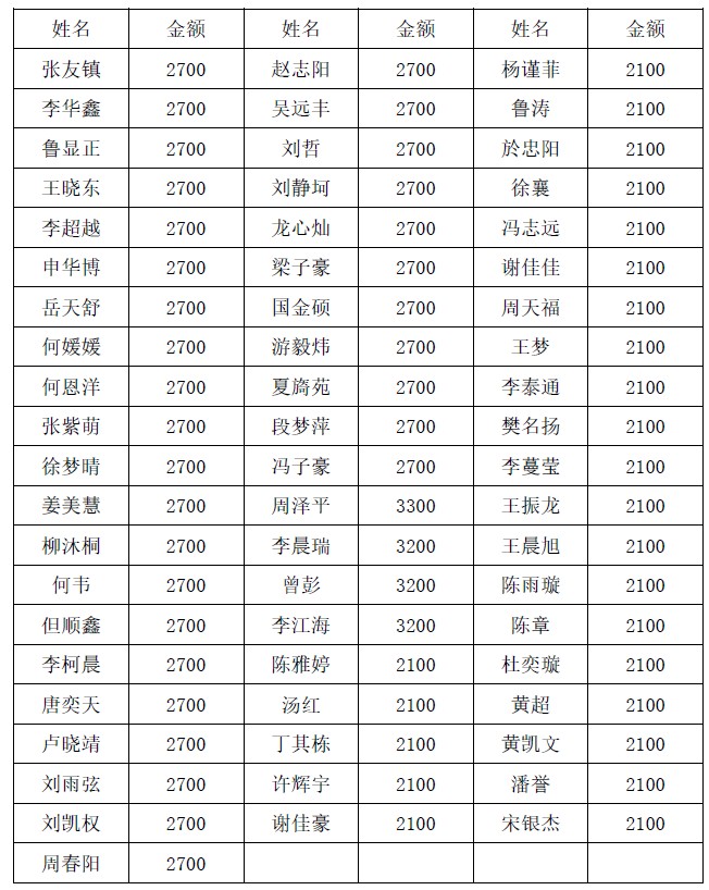 未来技术学院2023-2023学年国家助学金评审结果
