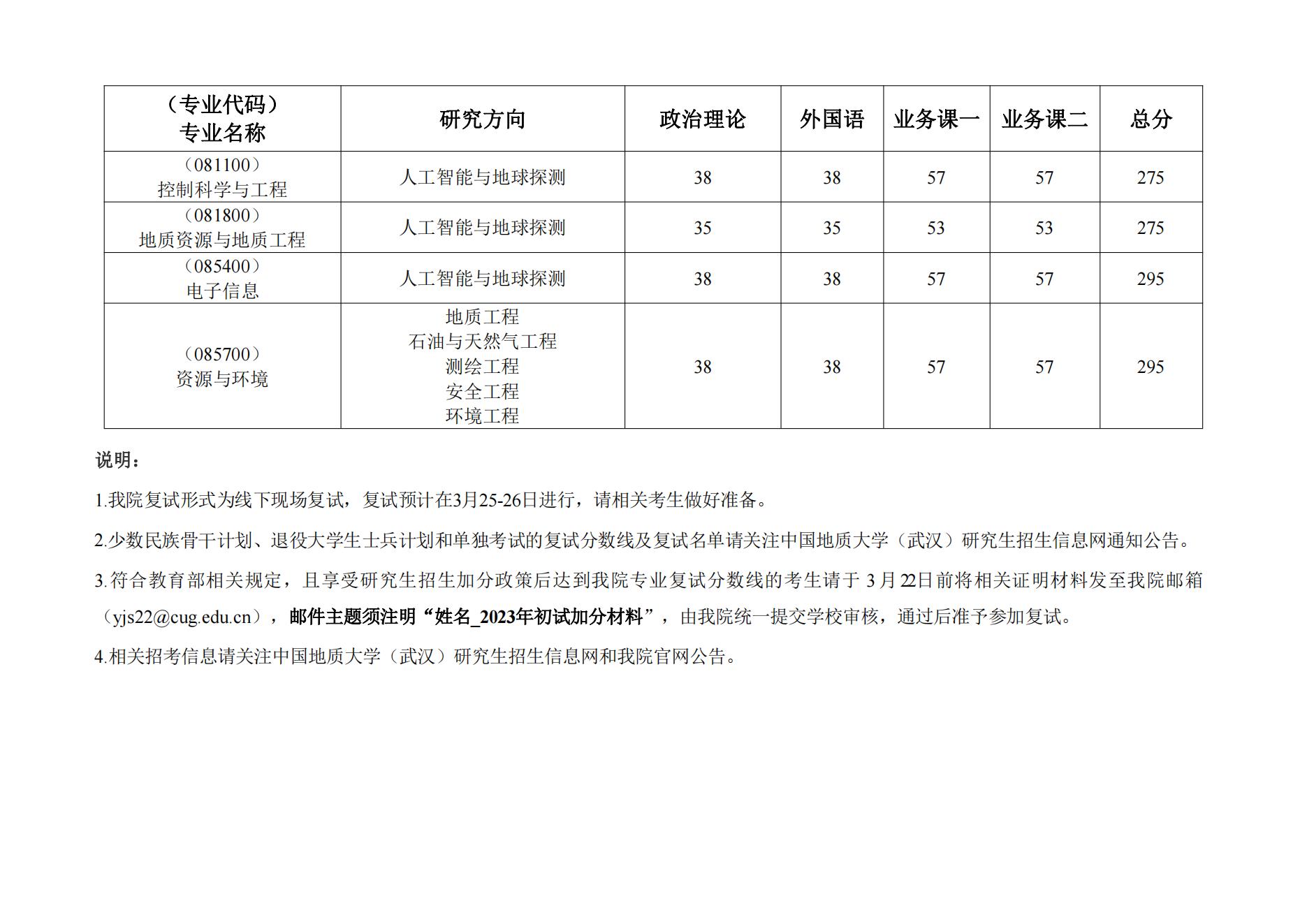 未来技术学院 2023年硕士研究生招生考试复试基本分数线及相关说明