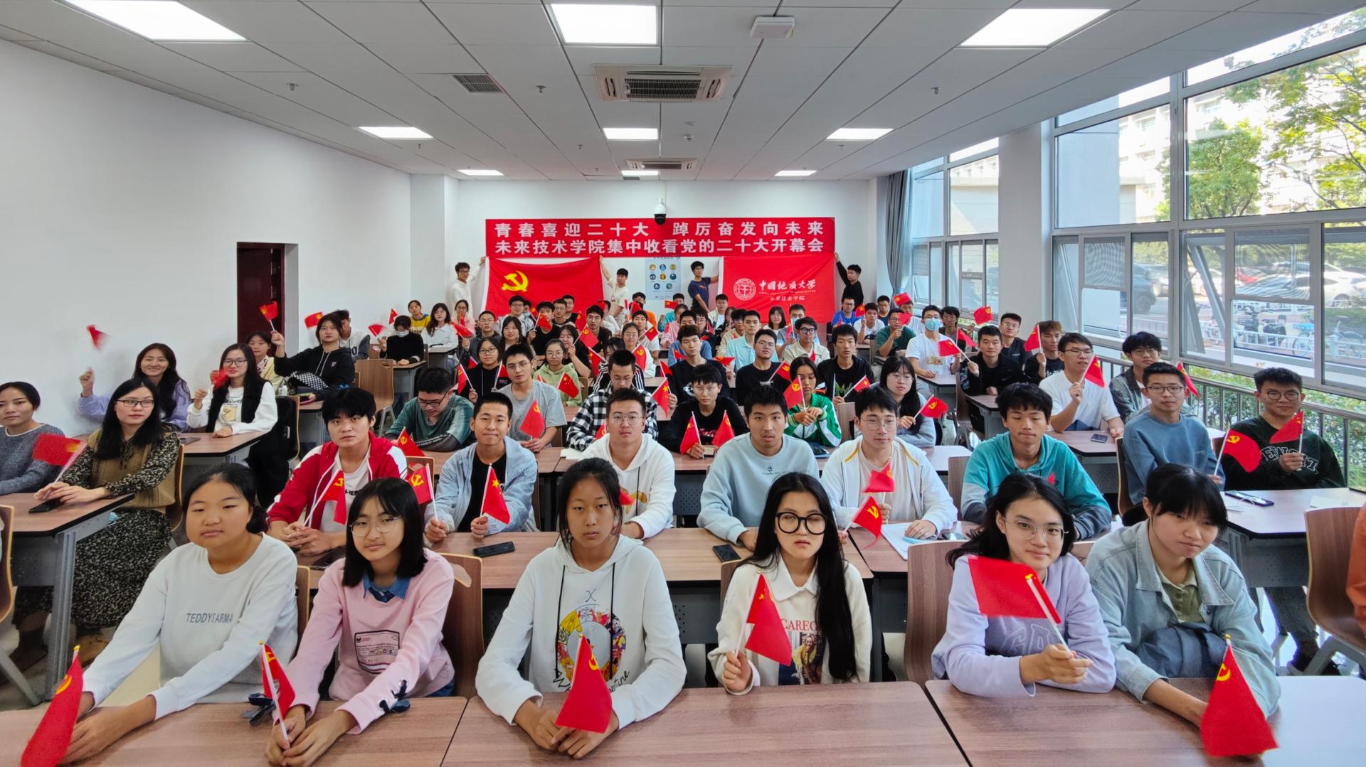 10月16日上午,中国共产党第二十次全国代表大会在北京人民大会堂开幕,这是在全党全国各族人民迈上全面建设社会主义现代化国家新征程、向第二个百年奋斗目标进军的关键时刻召开的一次十分重要的大会。未来技术学院提前谋划、认真准备,组织师生集中收听收看了开幕会实况直播,聆听了习近平总书记代表第十九届中央委员会向大会作的报告,会后大家畅谈聆听感悟,纷纷表示将以实际行动把习近平总书记重要讲话精神贯彻落实到实际行动中。